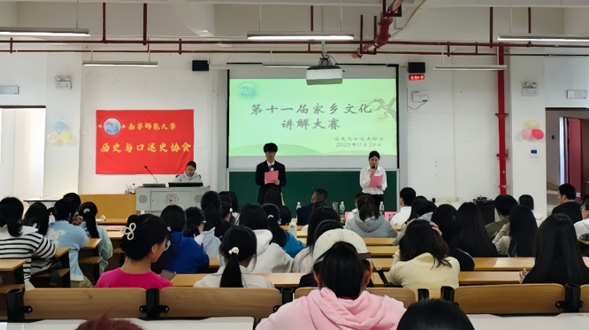 11月29日下午,我院历史与口述史协会第十一届家乡文化讲解大赛决赛在五合校区文综501教室圆满落幕。大赛以“承古邑风华·讲今朝乡韵”为主题,旨在挖掘家乡历史文化,并积极响应“南师廉声”廉洁文化月号召,推动文化传承与廉洁建设相融合。