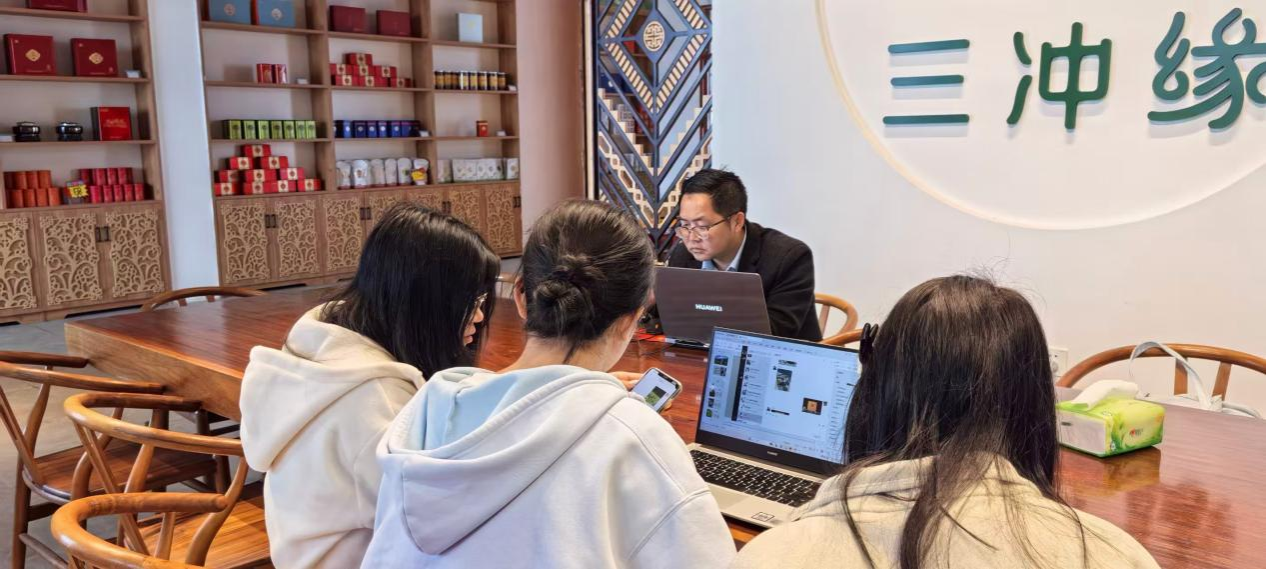 次日,师生们走进茶叶加工车间,观摩杀青、揉捻、烘干等手工制茶工序。学生们一边认真记录口述史料,一边对不同批次的茶叶进行采样,为后续研究茶品演变提供实证依据。期间师生与公司负责人座谈,结合历史专业视角,为三冲缘茶的文化IP打造、品牌推广提出建议。
