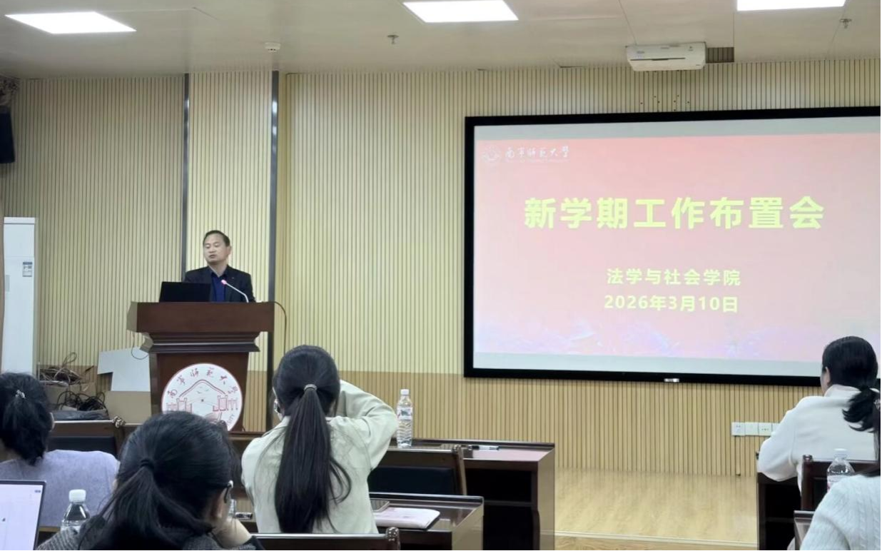 随后,主持学院行政工作的副院长吴少进就贯彻落实学校“攀高峰、强特色”工作推进会要求,全面部署了新学期的学院教育教学工作。他强调,要充分了解国家和区域经济社会发展趋势和需求,把握法学、社会学、历史学的学科专业的基础优势和发展定位,找准三个学科专业内涵发展的着力点和落脚点,谋划传统学科专业转型发展和符合经济社会发展需要的研究方向,强化教师队伍的教育教学和社会服务能力提升,培育经济社会发展需要的适配人才。