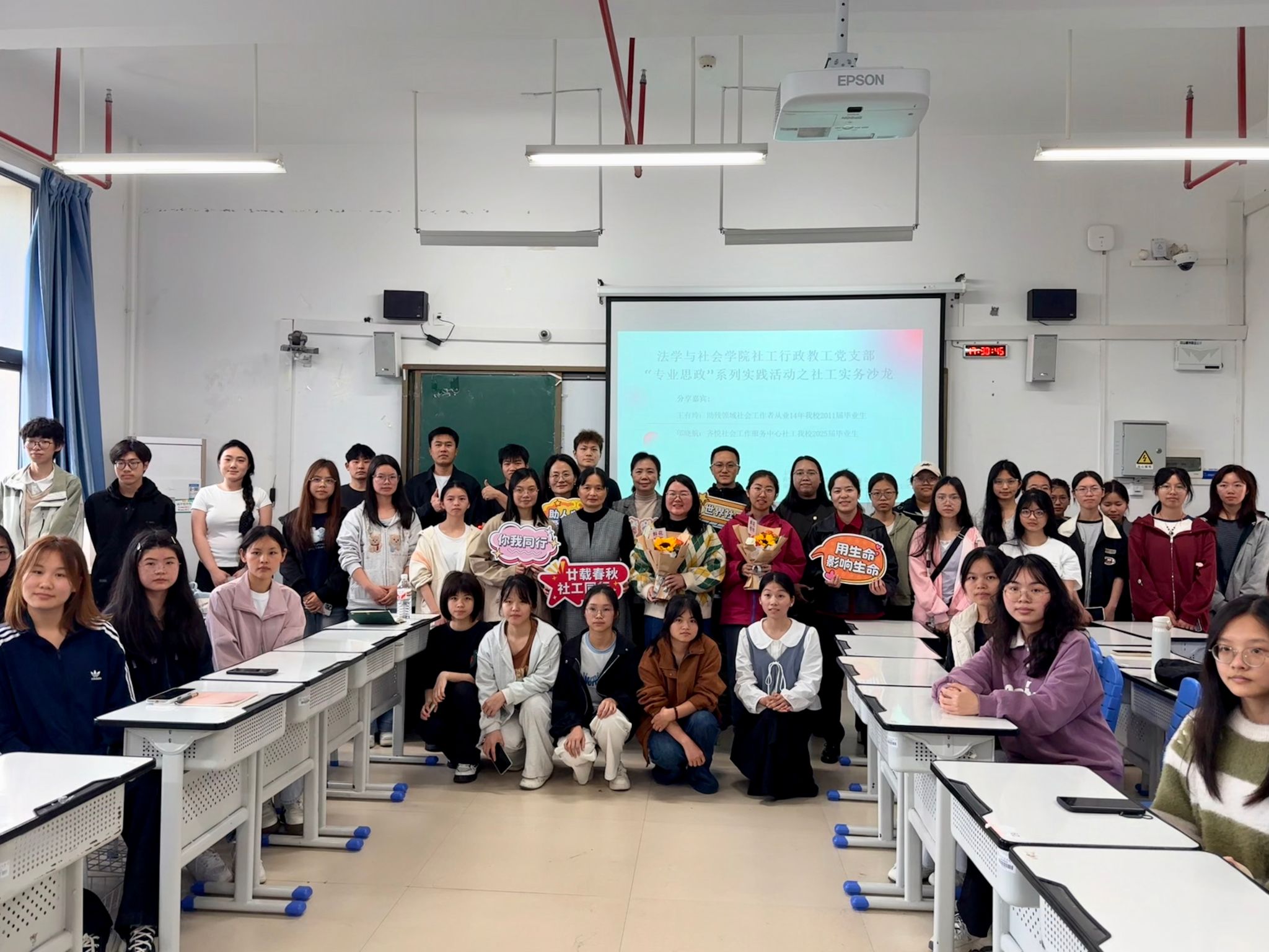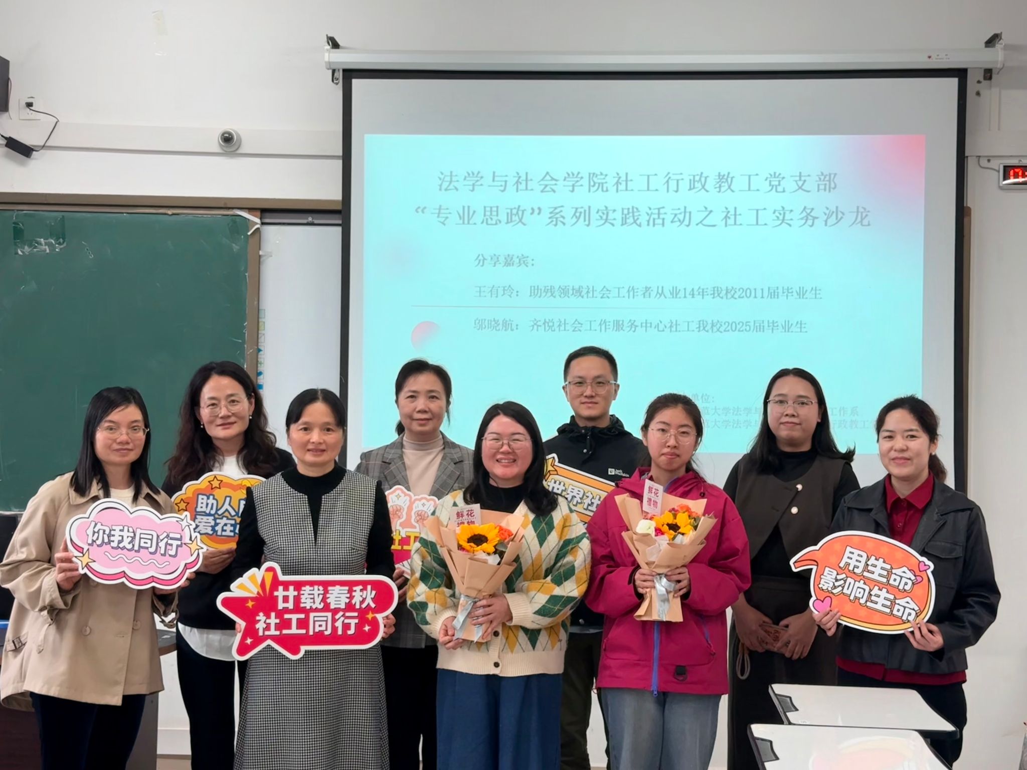 为深化“专业思政”建设,促进社会工作理论与实务深度融合,搭建在校学子与优秀校友的交流平台,3月17日下午,在第二十个世界社会工作日之际,院社会工作系、社工行政教工党支部在五合校区文综603联合举办了“专业思政”系列实践活动之社工实务交流会。