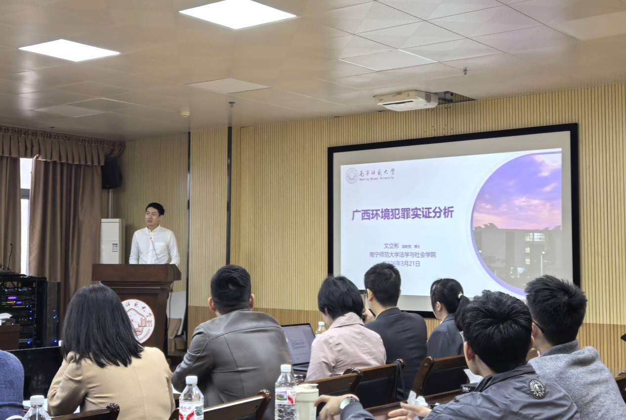 3月21日上午,我院在五合校区理综楼720室举办了“三元辉映”大讲堂第二场报告会。本次报告会以“涉重金属污染等环保刑事犯罪探析”为主题,结合《中华人民共和国生态环境法典》出台背景与广西重金属污染防治的实践需求展开深入研讨。广西法学会刑法学研究会陆洪鸣会长、高一飞副会长等出席活动,我院卢明威副院长、法律系教师兰敬、陈西茜、文立彬、杨剑锋和部分研究生参与了本次活动。
